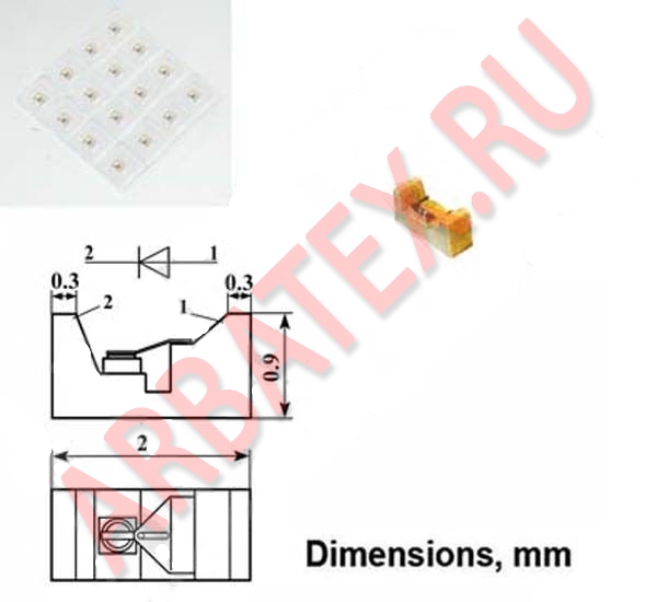 Товарный знак, тип диода и дата изготовления наносятся на ярлык, вкладываемый в групповую тару.