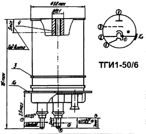ТГИ1-50/6 тиратрон импульсный модуляторный относится к разделу электровакуумных приборов и ламп различного назначения. По конструкции тиратрон импульсный модуляторный состоит из вакуумно-герметичной, жесткой оболочки, внутри которой отсутствует кислород.