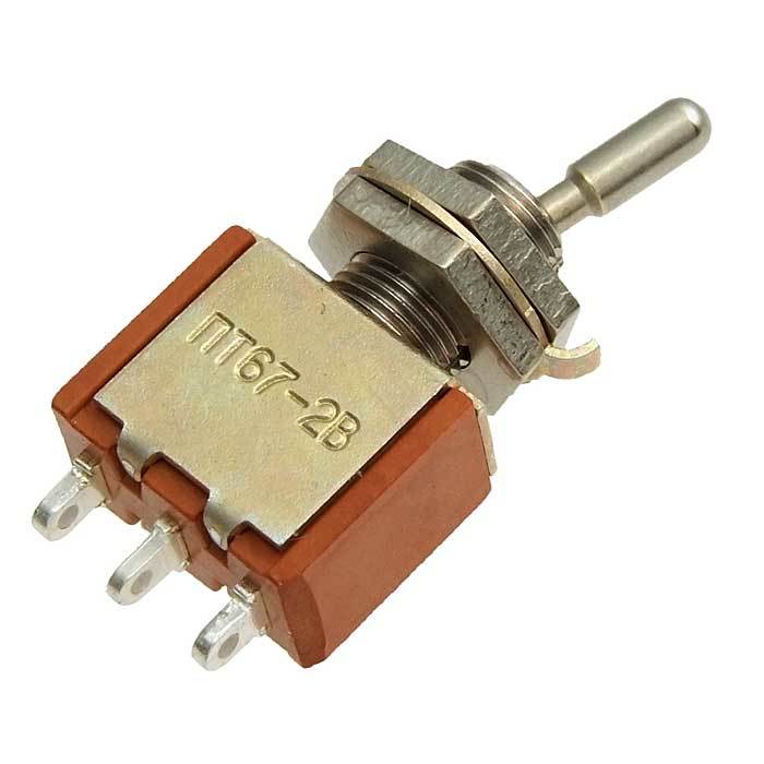ПТ67-2КВ переключатель тумблерный миниатюрный рычажный применяется для коммутации электрических цепей постоянного и переменного тока в радиоэлектронной аппаратуре.