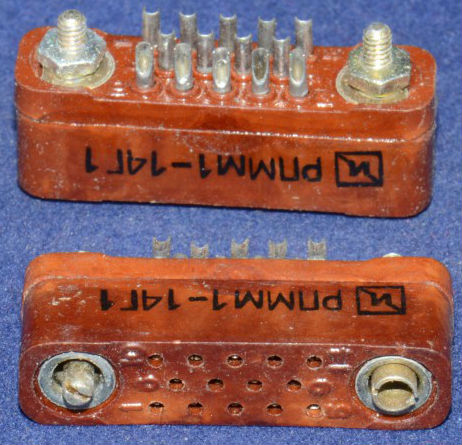 Низкочастотные прямоугольные соединители для объемного монтажа врубного сочленения РПММ1 предназначены для работы в электрических цепях постоянного, переменного (частотой до 3МГц) и импульсного токов при напряжении до 200В (амплитудное значение) и силе тока до 3А, применяются в авиационной и космической технике, в блоках и приборах специальных систем управления. Соединители изготавливают: 1 типа, 9типономиналов, 5 конструктивных исполнений, 74 типоконструкций. Исполнения: 1 - блочная часть без кожуха, 3 - блочная часть с резьбовыми направляющими, 8 - кабельная часть с хомутом, 9 - кабельная часть без кожуха.