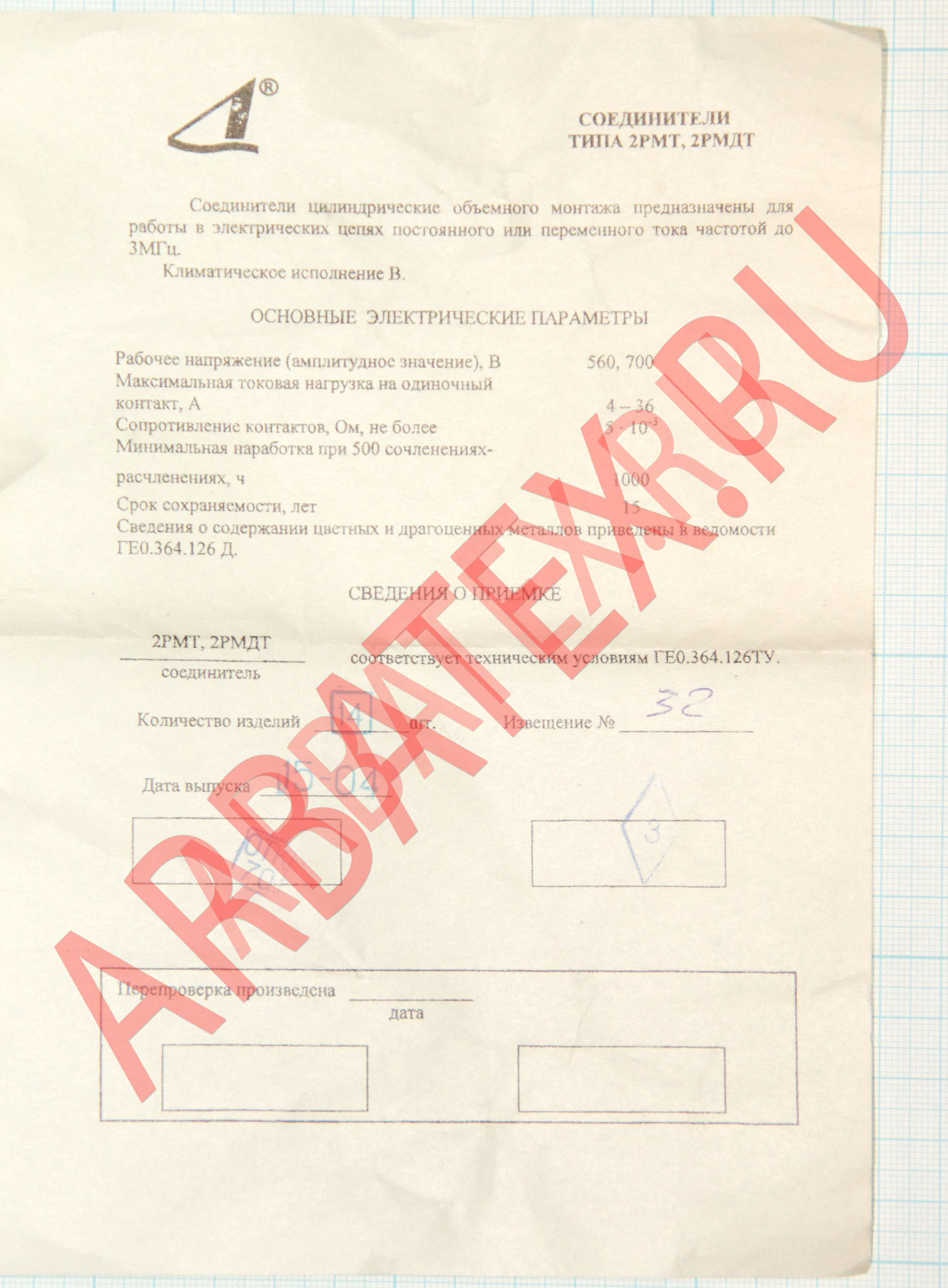 Разъемы серии 2рмдт могут иметь на корпусе некоторую другую маркировку, отличающуюся от заданной на несколько букв или цифр. Это связано с самим производством этих разъемов - корпуса, головы могут быть переставлены на другие разъемы.